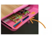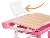 Специальный барьер препятствует соскальзываю тетрадей и бумаги со стола. Металлическая подставка для книг находится на безопасном расстоянии от глаз ребенка, поэтому сводится к минимуму нагрузка на глаза и сохраняется зрение. Для корректировки угла наклона столешницы необходимо ослабить фиксаторы, затем установить подходящий угол наклона и крепко зафиксировать.
