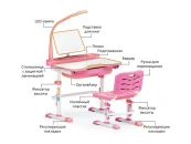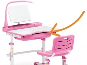 LED лампа имеет современный и стильный дизайн корпуса, в функции лампы включены три режима; для учебы, для отдыха и утренний свет. Лампа оснащена сенсорным выключателем, а также возможностью регулирования яркости всего одним касанием. Прорезиненная ручка позволяет менять угол наклона плафона. Высота стульчика легко регулируется одной рукой и надежно фиксируется винтами. Эргономичный дизайн стульчика повторяет контуры спины и бедер, в результате поддерживается здоровая осанка и нормализуется кровообращение. На ножке стульчика также есть шкала соотношения роста ребенка и высоты стульчика. Выбрав оптимальное соотношение параметров комплекта и роста ребенка, можно создать максимально комфортные условия для учебы и творчества.