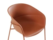 Кресло Coodi отличается привлекательным внешним видом, в основе которого контрастное сочетание «плотного» верха и изящных ножек из металла. Удобное сиденье образует «монолит» с широкой спинкой и подлокотниками. Конструкция напоминает ракушку. Такая форма разгружает верхние отделы позвоночника, поддерживает зону поясницы, повторяя контуры тела, и обеспечивает комфортную посадку. Идея дизайна заключается в функциональности кресла, которое одинаково хорошо смотрится и за рабочим, и за обеденным столом, и в локации для отдыха за городом.