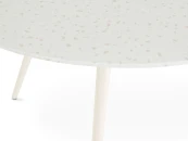 Круглый обеденный стол с лаконичным дизайном. Столешница выполнена из МДФ, покрытая пвх пленкой с рисунком Terrazzo. Сверху столешница покрыта прозрачным полиуретановым лаком, что придает покрытию высокую стойкость к механическим повреждениям.