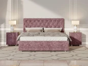 Элегантная интерьерная кровать с изголовьем, украшенным декоративными пуговицами и глубокой пиковкой. Модель изготовлена из ДСП. В комплект кровати входит кроватное основание. Каркас основания выполнен из металла, ламели - из берёзы. При необходимости в кровать можно включить подъемный механизм с бельевым ящиком.