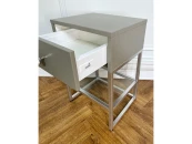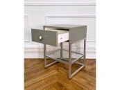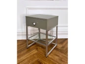 Стильная тумба с выдвижным ящиком и дополнительной полкой из стекла. Столешница и ящик выполнены из МДФ, основание — металл. Компактность и простые формы позволят данной модели стать украшением любого интерьера.