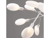 Материал арматуры – металл. Оттенки – черный, белый. Стеклянные плафоны оригинальной формы. Трендовый флористический дизайн. Источник света – лампа G4.