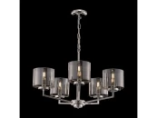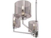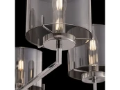 Серия Karen из хромированного метала и стекла выполнена в стиле минимализм. Стеклянные дымчатые плафоны дополнены гальваническим напылением, которое придает стеклу зеркальный эффект при выключенном освещении и делает его ярким и сияющим при включенном режиме. Плафоны имеют форму цилиндра и не закрыты сверху и снизу, что позволяет избежать скопления пыли. Плафоны крепятся на скобы, что позволяет быстро и легко их снимать и одевать. Высота люстры регулируется длиной цепи.