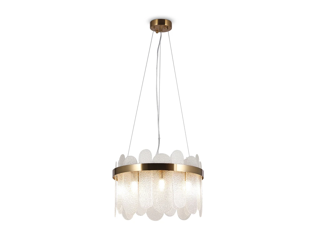 Арматура из металла. Цвет – латунь и никель. Стеклянный декор в двух вариантах: фактурный с эффектом замороженного стекла и глянцевый дымчатого оттенка. Источник света – лампа G9.