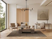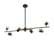 Арматура и плафоны из металла. Черный цвет дополнен латунной окантовкой. Поворотные плафоны и арматура позволяют видоизменять композицию и регулировать направление светового потока. Источник света – лампа GU10.