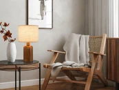 Основание светильника — натуральное дерево, цвет — бежевый. Тканевый абажур из натурального льна. Трендовый светильник в стиле эко. Источник света — лампа с цоколем E27. Подходят лампы Voltega 2427, 7065, 7134 и 7045. В серии Forest обновление. Добавили настольный светильник с формой основания песочные часы и тканевым абажуром из белого цвета хлопка.