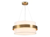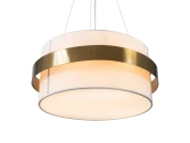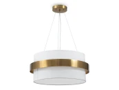 Цилиндрической формы абажур из ткани белого цвета. Декоративная парящая окантовка из металла в цвет арматуры. Регулируется по длине. Компактные размеры подходят для низких потолков и небольших интерьеров. Металлическая арматура, цвет - латунь и никель. Источник света — лампа с цоколем Е14, E27 и для настенного бра дополнительный LED с температурой свечения 3000 K.