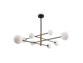 Металлическая арматура. Цвет — чёрный с золотистыми вставками. Плафоны — круглые из белого матового стекла - обеспечивают мягкое заливное освещение. На корпусе бра удобная кнопка для включения. Дизайн — минималистичный Источник света — лампа с цоколем G9.