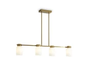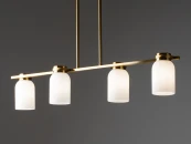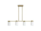Арматура из металла. Цвет латунь. Плафоны из белого стекла новой необычной формы. Два варианта светильников — потолочные и бра. Подходит для помещений с низкими потолками. Источник света — лампа. Цоколь E14.