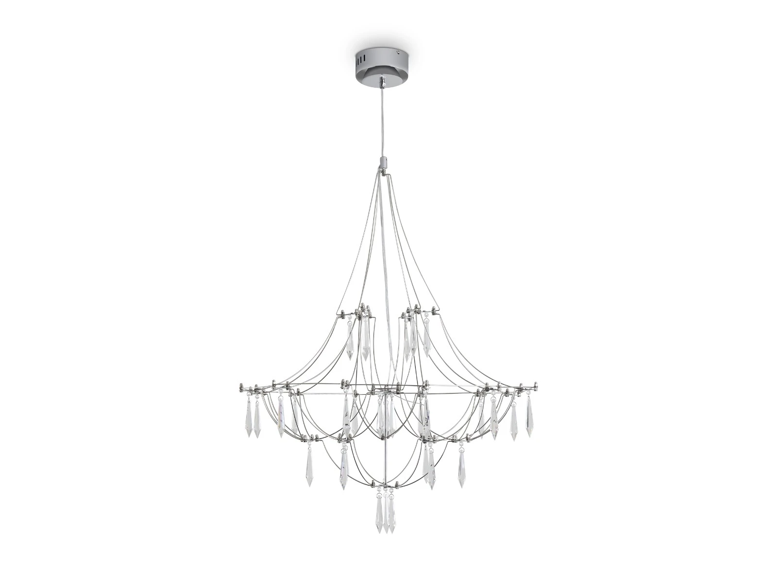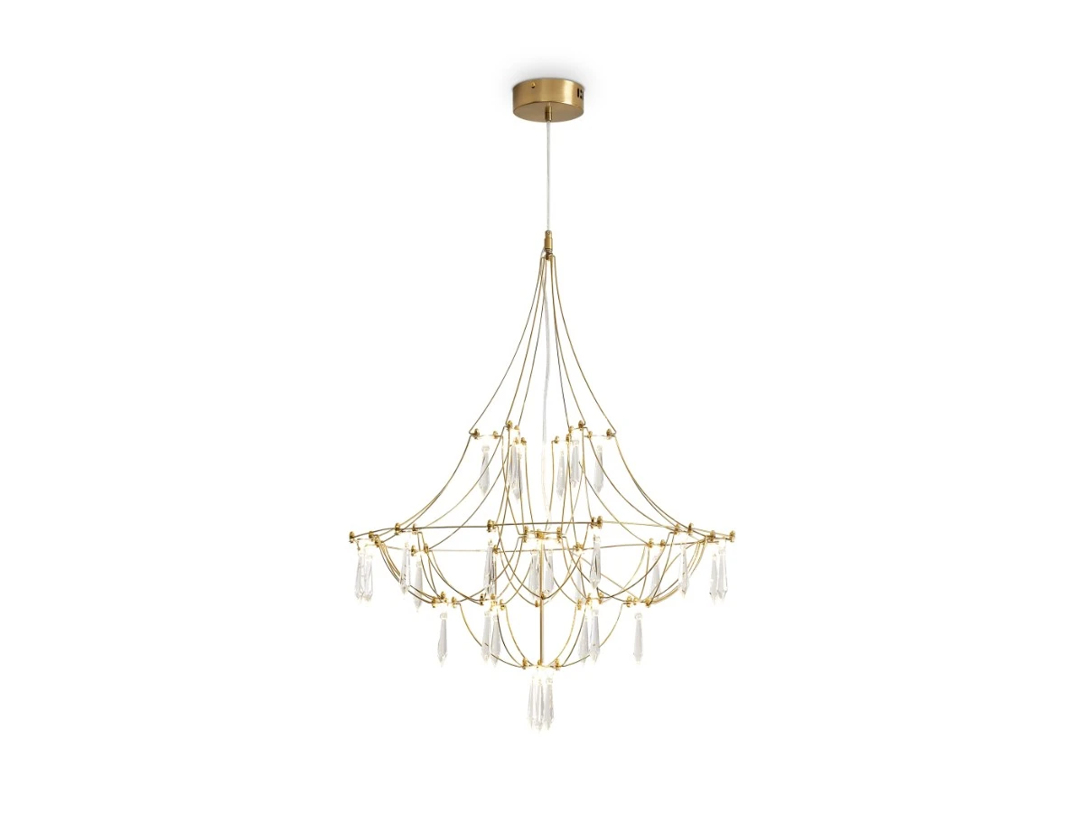 Арматура - хромированная нержавеющая сталь. В соединениях арматуры Led источник света и декоративные элементы из хрусталя в виде капелек. Цветовая температура 3000К.