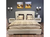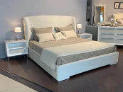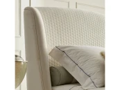 На фото в другой ткани.Кровать с решеткой на низких ножках выполнена в стиле ар-деко. Обтянута тканью из ассортимента фабрики. На высоком изголовье с бортиками ткань с рисунком.Размер спального места 180*200 см.Поставляется с решеткой, без матраса и без постельных принадлежностей.