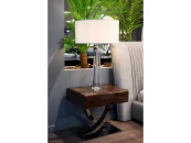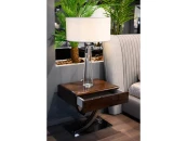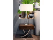 Прикроватная тумбочка выполнена в стиле Ар-деко. Изготовлена из высококачественного шпонированного МДФ и дополнена изогнутыми металлическими ножками. Тумбочка оснащена одним выдвижным ящиком.