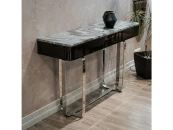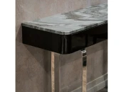 Консоль выполнена в стиле Ар-деко. Основание изготовлено из высококачественного лакированного МДФ. Столешница из мрамора. Ножки выполнены из полированной стали.