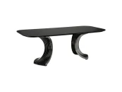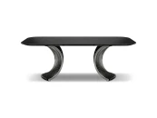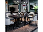 Обеденный стол, выполненный в стиле ар-деко. Изогнутые ножки дополнены столешницей из высококачественного шпонированного МДФ высокой плотности. Детали из нержавеющей стали с хромированным покрытием.