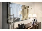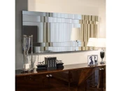 Зеркало выполнено в стиле Ар-деко. Зеркало на каркасе из высококачественного шпонированного МДФ высокой плотности. Декорировано полосами.