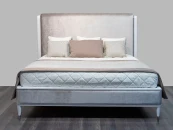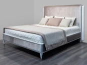 Кровать на конических ножках выполнена в стиле ар-деко из высококачественного МДФ высокой плотности и массива дерева. Изголовье декорировано резьбой. Размер спального места 180*200 см. Поставляется с решеткой, без матраса и без постельных принадлежностей.