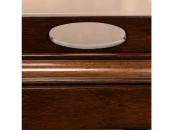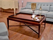 Журнальный стол выполнен в стиле Неоклассика. Отделка шпон махагона. Столешница с бортиком по периметру. Сделан из массива дерева и высококачественного МДФ высокой плотности. Для лучшей устойчивости нижняя часть ножек оснащена металлическим окончанием. Нижняя крестовина не рассчитана на нагрузку - поднос переставлять вниз не рекомендуется.