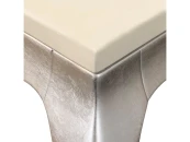 Стол на гнутых ножках выполнен в классическом стиле. Отделка перламутровый кремовый лак, ножки сусальное серебро, покрытое лаком шампань. Сделан из высококачественного МДФ высокой плотности и массива дерева. Стильный и изысканный маленький столик несет в себе очарование старинного дизайна с современными отделочными материалами. Изящный изгиб ножек подчеркивается простотой столешницы. Сочетание строгости форм с утонченностью делают этот столик несомненным украшением интерьера.