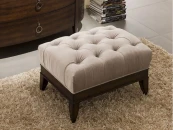 Пуф выполнен в стиле Неоклассика. База и ножки в отделке шпон вишни, сиденье обито серебристо-серым велюром и декорировано стежкой капитоне с пуговицами в ткани. Сделан из массива дерева.