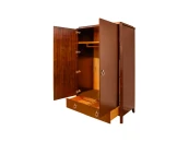 Гардероб выполнен в стиле Неоклассика. Отделка шпон вишни. Функционал дополнен 2 выдвижными ящиками снизу. Сделан из массива дерева и высококачественного МДФ высокой плотности. Все выдвижные ящики снабжены направляющими.