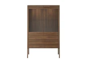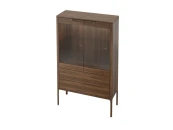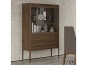Витрина, изготовлена из высококачественного, шпонированного МДФ высокой плотности. Витрина оснащена двумя стеклянными дверками, подсветкой и двумя выдвижными ящиками. Все ящики снабжены направляющими системы soft-close. Уникальная система последнего поколения добавляет невероятную плавность открывания/закрывания.