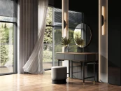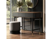 Туалетный столик на высоких ножках выполнен из высококачественного сертифицированного МДФ высокой прочности. Выдвижной ящик с механизмом открывания push to open.
