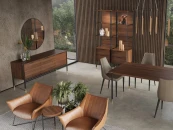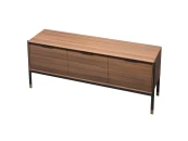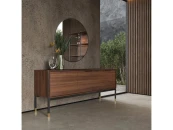 Буфет на высоких ножках изготовлен из высококачественного шпонированного МДФ высокой плотности. Металлические ножки с латунными колпачками и металлические ручки подчеркивают изысканность модели.