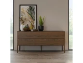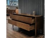 Комод изготовлен из высококачественного, шпонированного МДФ высокой плотности. Комод оснащен четырьмя выдвижными ящиками.Все ящики снабжены направляющими системы soft-close. Уникальная система последнего поколения добавляет невероятную плавность открывания/закрывания и высокую динамическую нагрузку. Необычный дизайн ножек является отличительной чертой коллекции Paterna. По задумке дизайнеров фабрики ножки напоминают заточенный карандаш. Такая отделка придает мебели оригинальность и подчеркивает натуральность материалов.
