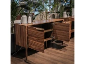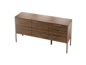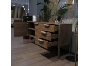 Буфет, изготовлен из высококачественного, шпонированного МДФ высокой плотности. Буфет оснащен двумя дверками и тремя выдвижными ящиками. Ящики снабжены системой плавного закрывания Soft closing и дополнены деревянными ручками.