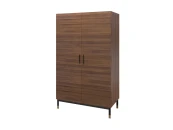 Гардероб с двумя распашными дверками изготовлен из высококачественного шпонированного МДФ высокой плотности. Ножки изготовлены из металла. Металлические колпачки на ножках и металлические ручки подчеркивают изысканность модели. Внутреннее наполнение гардероба - 1 полка и штанга сверху.