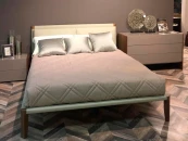 Кровать на высоких ножках, выполнена из высококачественного, сертифицированного МДФ высокой прочности. Отделка изголовья в экокоже из ассортимента фабрики. Покрывала, подушки и матрас не входят в комплект поставки.