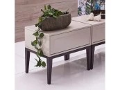 Прикроватная тумбочка на высоких ножках, выполнена из высококачественного, сертифицированного МДФ высокой прочности. Оснащена одним выдвижным ящиком с системой открывания Push to open.