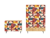 Корпусная мебель, с которой можно составить множество решений для гостиной, детской, кухни, спальни, прихожей, рабочей зоны. Комоды, шкафы, тумбы, столы, витрины, полки, серванты характеризуются универсальностью, многозадачностью, надёжными устойчивыми конструкциями. Имеют выразительный внешний вид, вдохновленный направлением ретро. Смотрятся легко и воздушно за счет деревянных ножек, минимального количества декоративных элементов, спокойных природных оттенков.