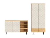 Корпусная мебель, с которой можно составить множество решений для гостиной, детской, кухни, спальни, прихожей, рабочей зоны. Комоды, шкафы, тумбы, столы, витрины, полки, серванты характеризуются универсальностью, многозадачностью, надёжными устойчивыми конструкциями. Имеют выразительный внешний вид, вдохновленный направлением ретро. Смотрятся легко и воздушно за счет деревянных ножек, минимального количества декоративных элементов, спокойных природных оттенков.