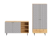 Корпусная мебель, с которой можно составить множество решений для гостиной, детской, кухни, спальни, прихожей, рабочей зоны. Комоды, шкафы, тумбы, столы, витрины, полки, серванты характеризуются универсальностью, многозадачностью, надёжными устойчивыми конструкциями. Имеют выразительный внешний вид, вдохновленный направлением ретро. Смотрятся легко и воздушно за счет деревянных ножек, минимального количества декоративных элементов, спокойных природных оттенков.