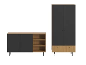 Исполнение: Фасад - Чёрный, Ножки металлические, Корпус - Дуб Канзас коричневый