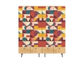 Их можно использовать в качестве систем хранения, элементов для зонирования, фокусных точек. В дизайне ярко выражена доминанта прямых форм, графичности, лаконичных линий и элегантного исполнения. Что даёт пространству ощущение размеренности, сбалансированности, упорядоченности. Подходят интерьерам как с нейтральной базой, так и локациям с интенсивными цветовыми блоками. Индивидуальности добавят модели с оригинальными паттернами на фасадах. Предметы коллекции Frida гармонично впишутся в эклектичные и стилизованные интерьеры.