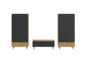 Исполнение: Ножки бук, Фасад - Чёрный, Корпус - Дуб Канзас коричневый