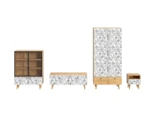 Корпусная мебель, с которой можно составить множество решений для гостиной, детской, кухни, спальни, прихожей, рабочей зоны. Комоды, шкафы, тумбы, столы, витрины, полки, серванты характеризуются универсальностью, многозадачностью, надёжными устойчивыми конструкциями. Имеют выразительный внешний вид, вдохновленный направлением ретро. Смотрятся легко и воздушно за счет деревянных ножек, минимального количества декоративных элементов, спокойных природных оттенков.