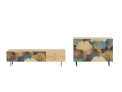Исполнение: Фасад - Принт Botanic, Корпус - Дуб Канзас коричневый, Ножки металлические