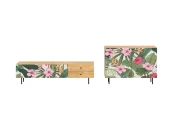 Исполнение: Корпус - Дуб Канзас коричневый, Ножки металлические, Фасад - Принт Tropics