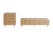 Корпусная мебель, с которой можно составить множество решений для гостиной, детской, кухни, спальни, прихожей, рабочей зоны. Комоды, шкафы, тумбы, столы, витрины, полки, серванты характеризуются универсальностью, многозадачностью, надёжными устойчивыми конструкциями. Имеют выразительный внешний вид, вдохновленный направлением ретро. Смотрятся легко и воздушно за счет деревянных ножек, минимального количества декоративных элементов, спокойных природных оттенков.
