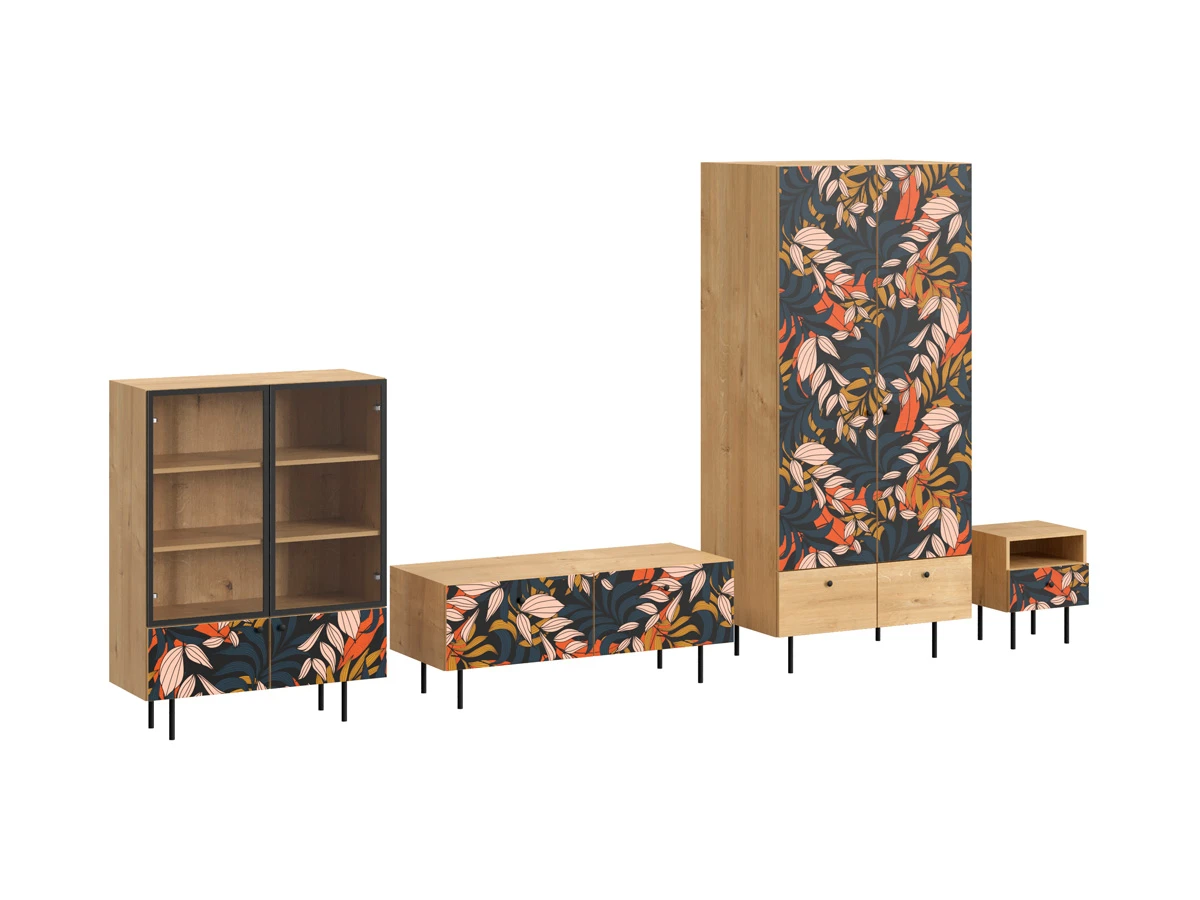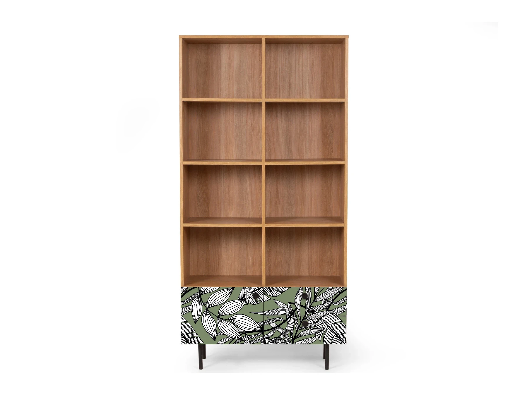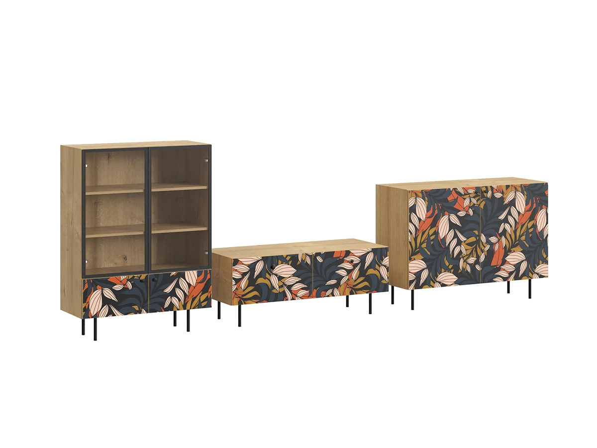 Исполнение: Ножки бук, Корпус - Дуб Канзас коричневый, Фасад - Стекло/Принт Leaf