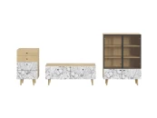 Корпусная мебель, с которой можно составить множество решений для гостиной, детской, кухни, спальни, прихожей, рабочей зоны. Комоды, шкафы, тумбы, столы, витрины, полки, серванты характеризуются универсальностью, многозадачностью, надёжными устойчивыми конструкциями. Имеют выразительный внешний вид, вдохновленный направлением ретро. Смотрятся легко и воздушно за счет деревянных ножек, минимального количества декоративных элементов, спокойных природных оттенков.