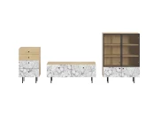 Корпусная мебель, с которой можно составить множество решений для гостиной, детской, кухни, спальни, прихожей, рабочей зоны. Комоды, шкафы, тумбы, столы, витрины, полки, серванты характеризуются универсальностью, многозадачностью, надёжными устойчивыми конструкциями. Имеют выразительный внешний вид, вдохновленный направлением ретро. Смотрятся легко и воздушно за счет деревянных ножек, минимального количества декоративных элементов, спокойных природных оттенков.