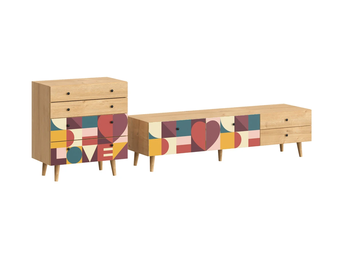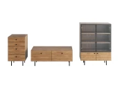Корпусная мебель, с которой можно составить множество решений для гостиной, детской, кухни, спальни, прихожей, рабочей зоны. Комоды, шкафы, тумбы, столы, витрины, полки, серванты характеризуются универсальностью, многозадачностью, надёжными устойчивыми конструкциями. Имеют выразительный внешний вид, вдохновленный направлением ретро. Смотрятся легко и воздушно за счет деревянных ножек, минимального количества декоративных элементов, спокойных природных оттенков.
