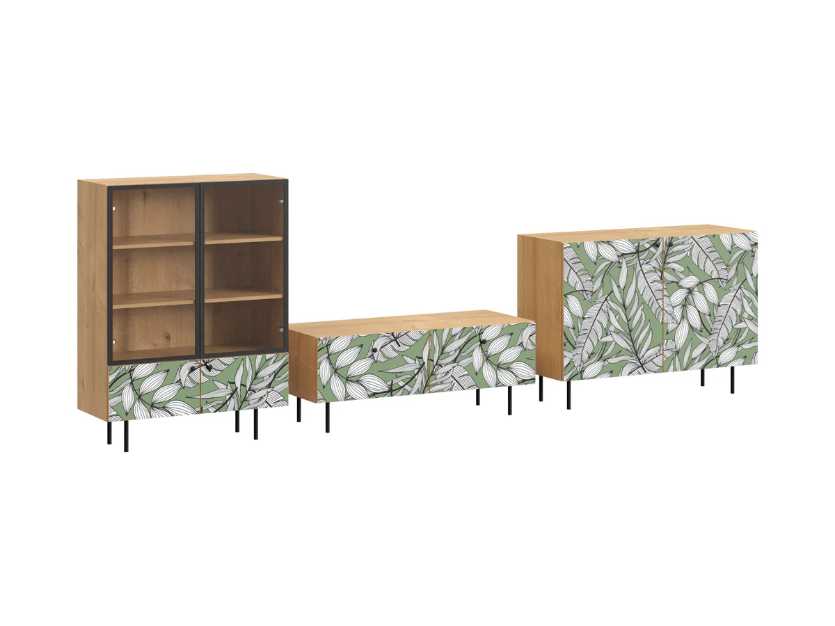 Исполнение: Корпус - Дуб Канзас коричневый, Ножки металлические, Фасад - Стекло/Принт Leaf