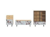 Корпусная мебель, с которой можно составить множество решений для гостиной, детской, кухни, спальни, прихожей, рабочей зоны. Комоды, шкафы, тумбы, столы, витрины, полки, серванты характеризуются универсальностью, многозадачностью, надёжными устойчивыми конструкциями. Имеют выразительный внешний вид, вдохновленный направлением ретро. Смотрятся легко и воздушно за счет деревянных ножек, минимального количества декоративных элементов, спокойных природных оттенков.