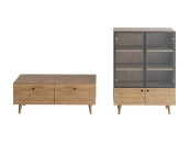 Корпусная мебель, с которой можно составить множество решений для гостиной, детской, кухни, спальни, прихожей, рабочей зоны. Комоды, шкафы, тумбы, столы, витрины, полки, серванты характеризуются универсальностью, многозадачностью, надёжными устойчивыми конструкциями. Имеют выразительный внешний вид, вдохновленный направлением ретро. Смотрятся легко и воздушно за счет деревянных ножек, минимального количества декоративных элементов, спокойных природных оттенков.